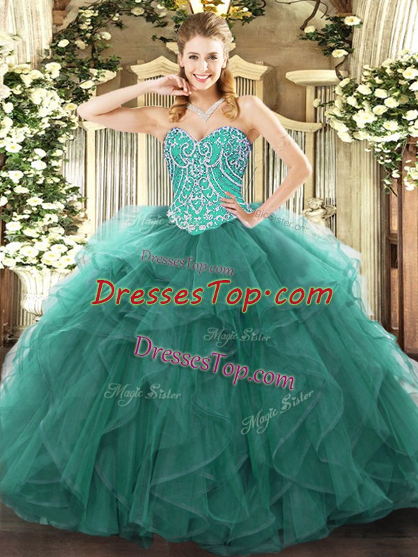 Low Price Turquoise Lace Up Sweetheart Beading and Ruffles 15 Quinceanera Dress Tulle Sleeveless