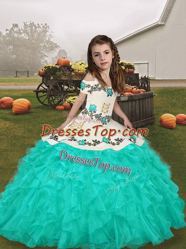 Low Price Turquoise Long Sleeves Lace Up Evening Gowns for Party and Military Ball and Wedding Party