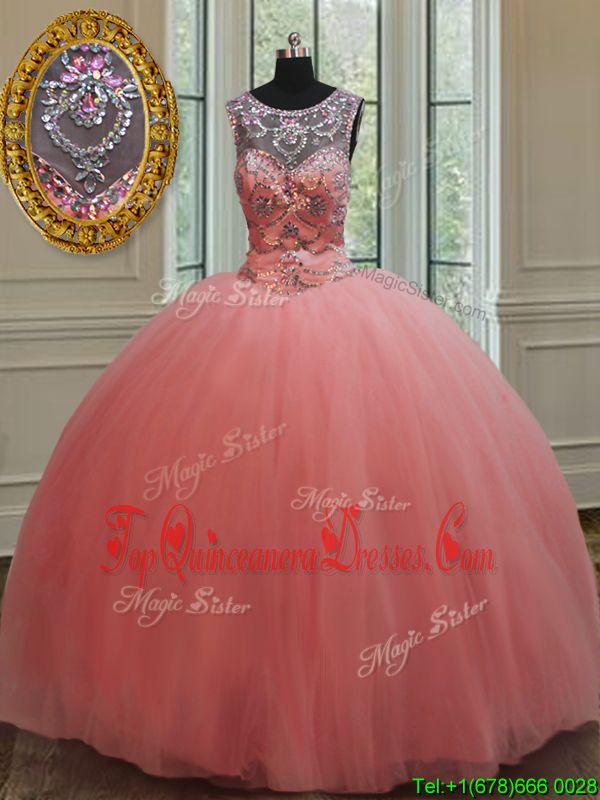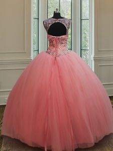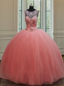 Low Price Watermelon Red Sweet 16 Dresses Military Ball and Sweet 16 and Quinceanera and For with Beading Scoop Sleeveless Lace Up