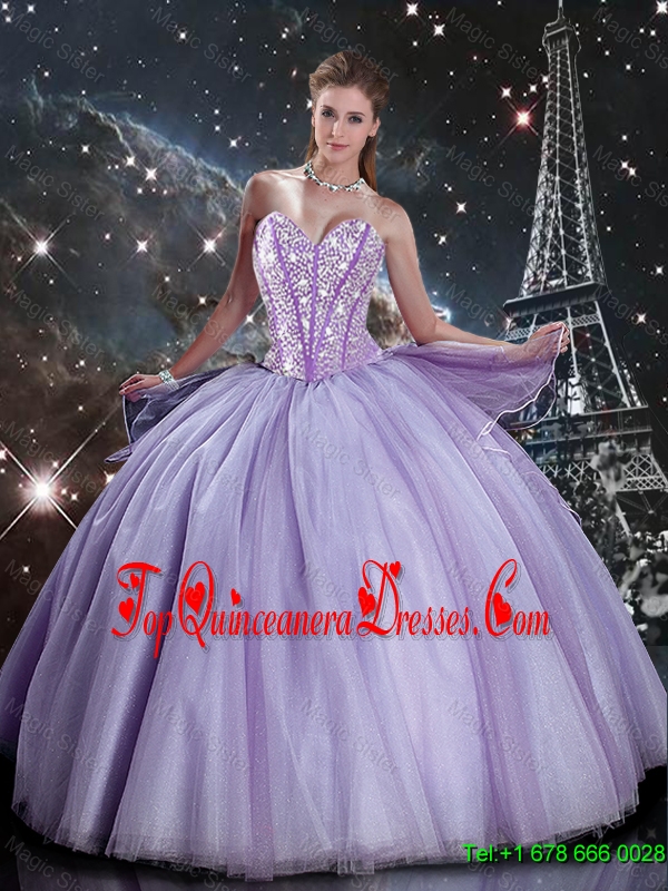 Luxurious 2016 Fall Sweetheart Lavender Tulle Sweet 16 Dresses with Beading