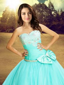 Luxurious Apple Green Sleeveless Floor Length Beading and Lace and Bowknot Lace Up Quinceanera Dresses