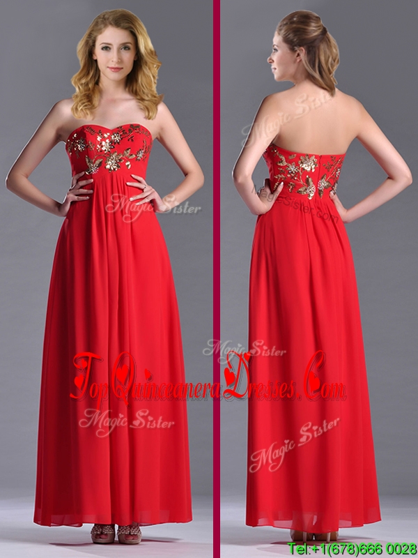 Luxurious Applique with Sequins Red Dama Dress in Ankle Length