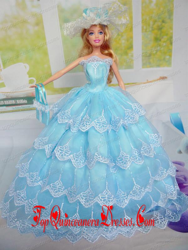 Luxurious Baby Blue Party Clothes for Noble Barbie Doll Tulle
