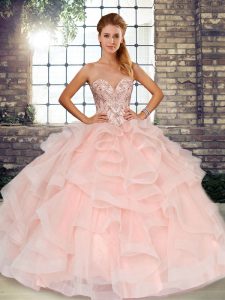 Luxurious Baby Pink Sleeveless Floor Length Beading and Ruffles Lace Up Quinceanera Dress