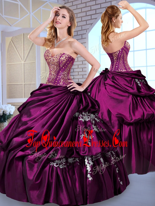 Luxurious Ball Gown Taffeta Dark Purple Quinceanera Dresses with Pick Ups