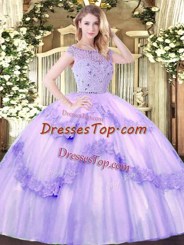 Luxurious Bateau Sleeveless Zipper Vestidos de Quinceanera Lavender Tulle