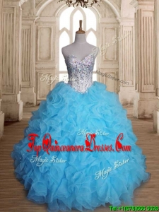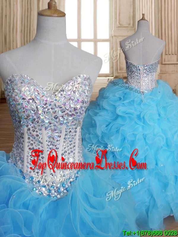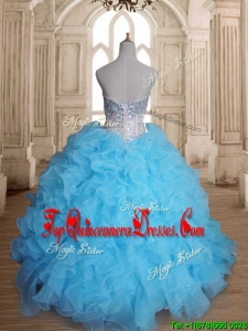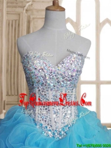Luxurious Beaded Bodice and Ruffled Sweet 16 Dress in Baby Blue