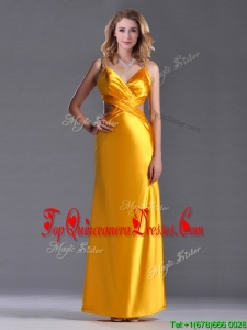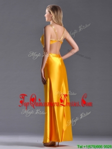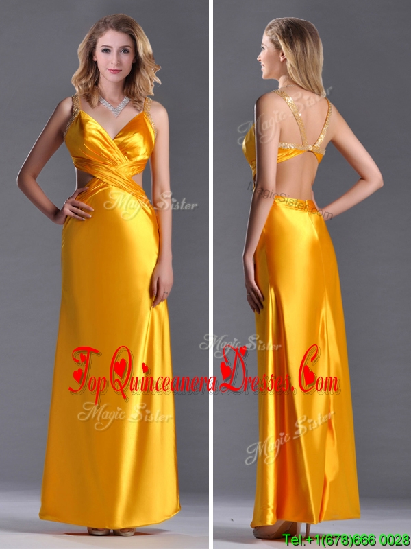 Luxurious Beaded Decorated Straps Criss Cross Dama Dress in Gold