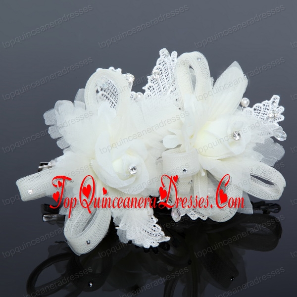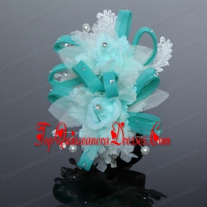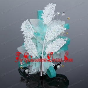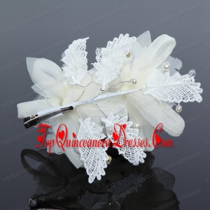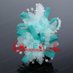 Luxurious Blue Lace Hair Flower with Imitation Pearls