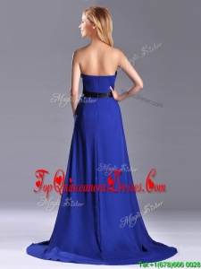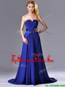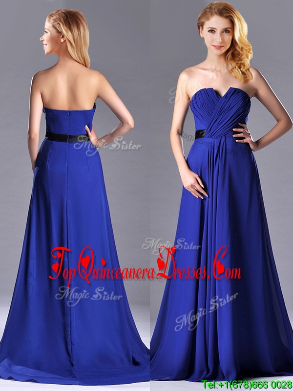 Luxurious Empire Chiffon Royal Blue Dama Dress with Brush Train