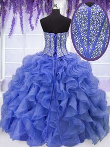 Luxurious Four Piece Royal Blue Sleeveless Ruffles and Sequins Floor Length Ball Gown Prom Dress