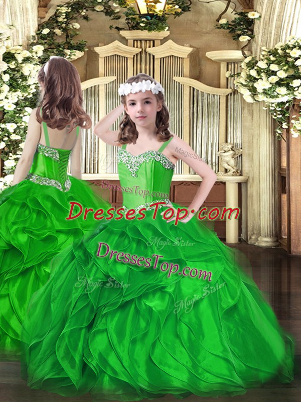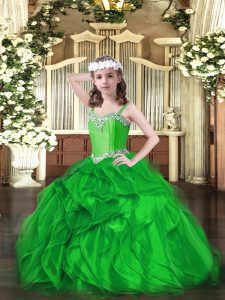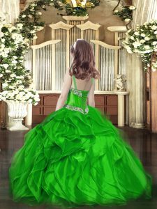 Luxurious Green Organza Lace Up Child Pageant Dress Sleeveless Floor Length Beading and Ruffles