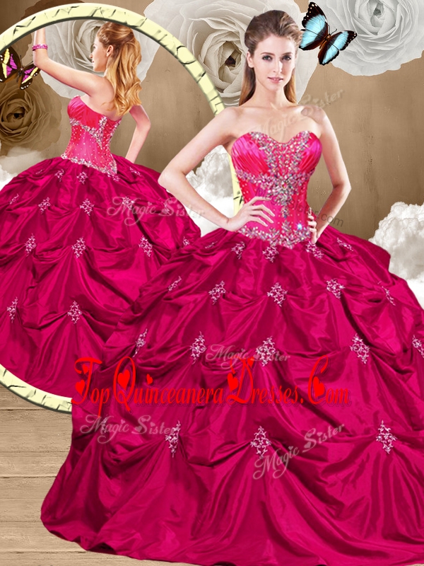Luxurious Hot Pink Quinceanera Dresses with Appliques and Pick Ups