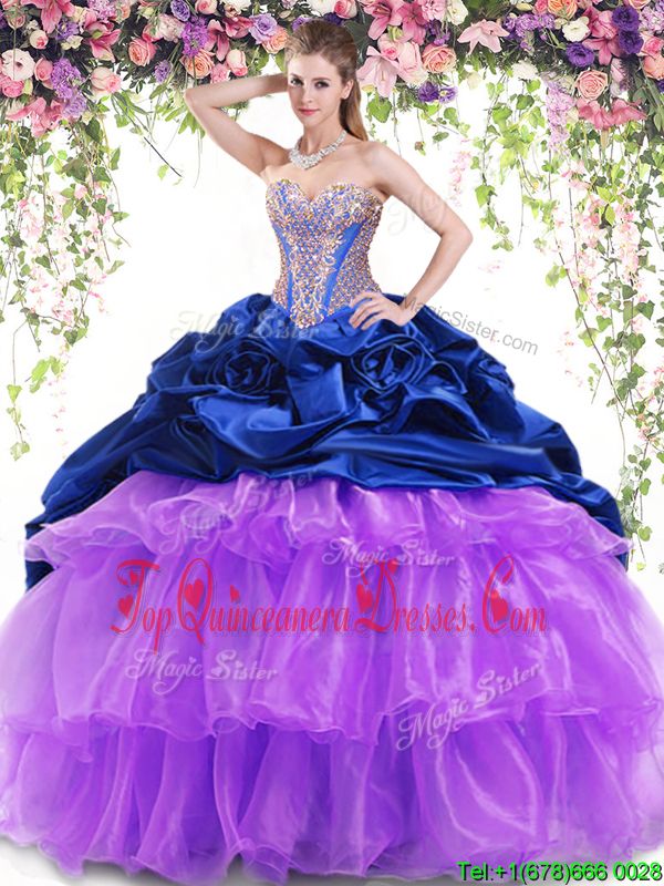 Luxurious Multi-color Ball Gowns Beading and Ruffled Layers and Pick Ups 15th Birthday Dress Lace Up Organza and Taffeta Sleeveless With Train
