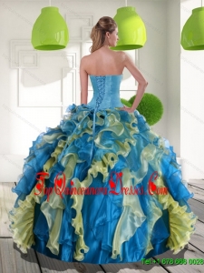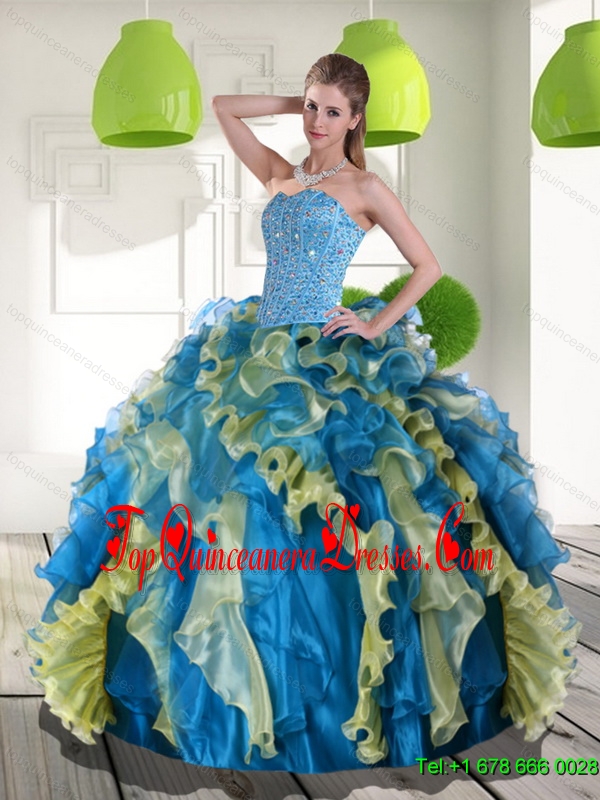 Luxurious Multi Color Quinceanera Dress with Beading and Ruffles for 2015