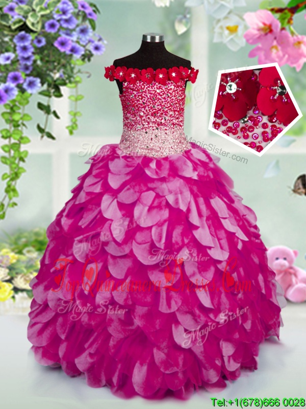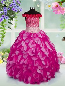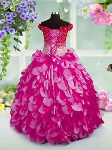 Luxurious Off the Shoulder Floor Length Ball Gowns Sleeveless Fuchsia Winning Pageant Gowns Lace Up