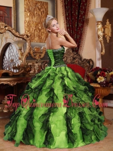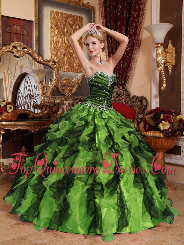 Luxurious Olive Green and Black Sweetheart Floor-length Beading and Ruffles Quinceanera Dress