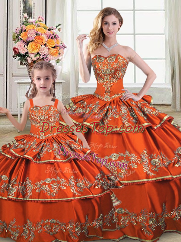 Luxurious Orange Sleeveless Satin and Organza Lace Up Quinceanera Dress for Sweet 16 and Quinceanera