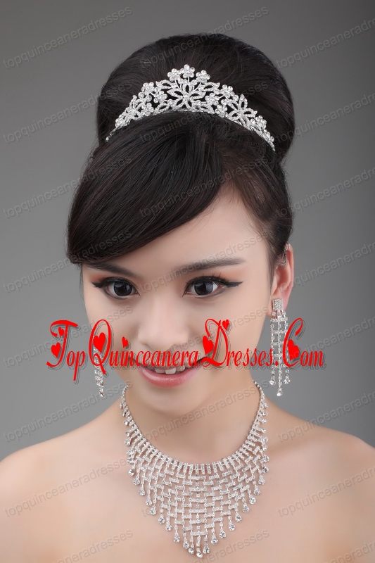 Luxurious Pearl and Alloy Dignified Ladies Tiara and Necklace
