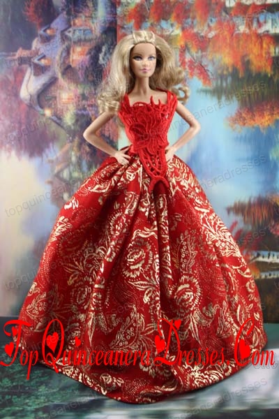 Luxurious Red Gown With Embroidery Made to Fit the Barbie Dress