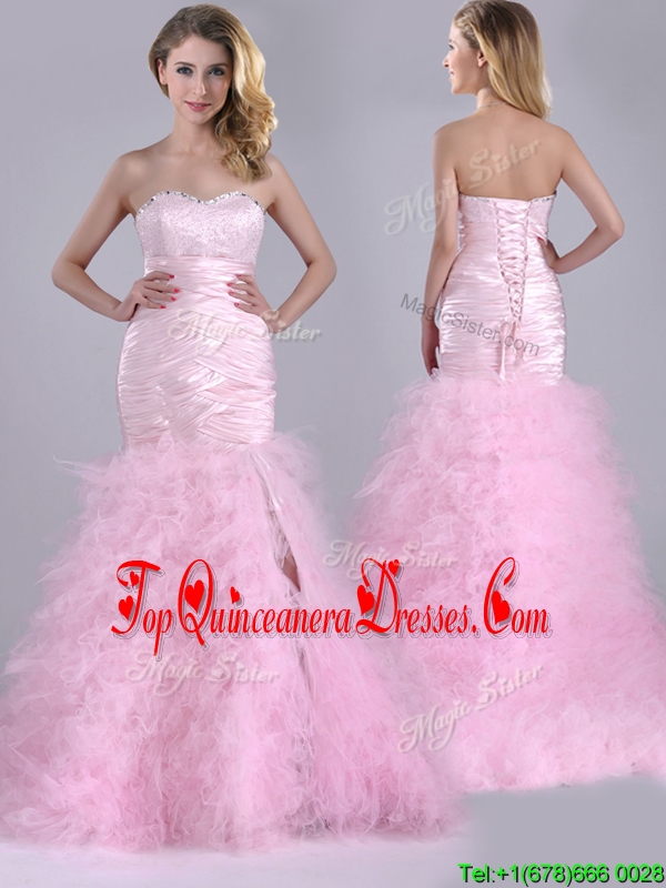 Luxurious Ruffled Taffeta and Tulle Dama Dress with Beading and Sequins