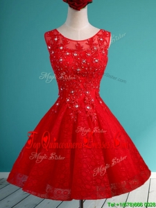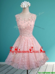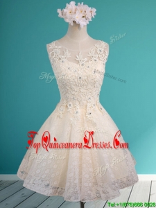 Luxurious See Through Scoop Short Damas Dress with Beading and Appliques