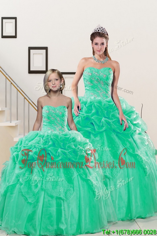 Luxurious Sleeveless Floor Length Beading and Pick Ups Lace Up Quince Ball Gowns with Turquoise