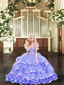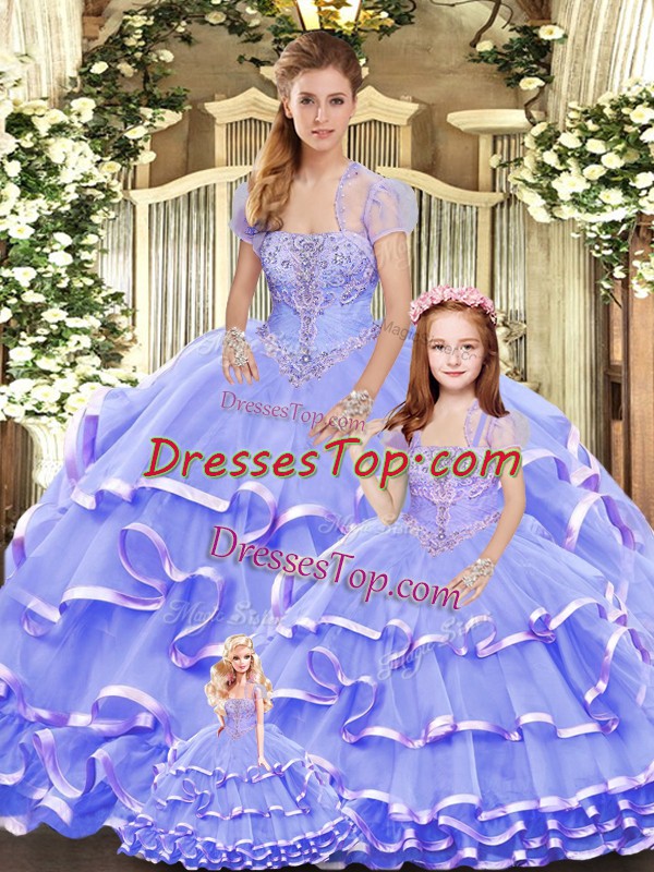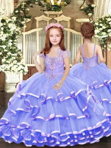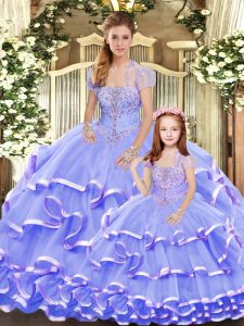 Luxurious Sleeveless Lace Up Floor Length Beading and Ruffled Layers Quinceanera Gown