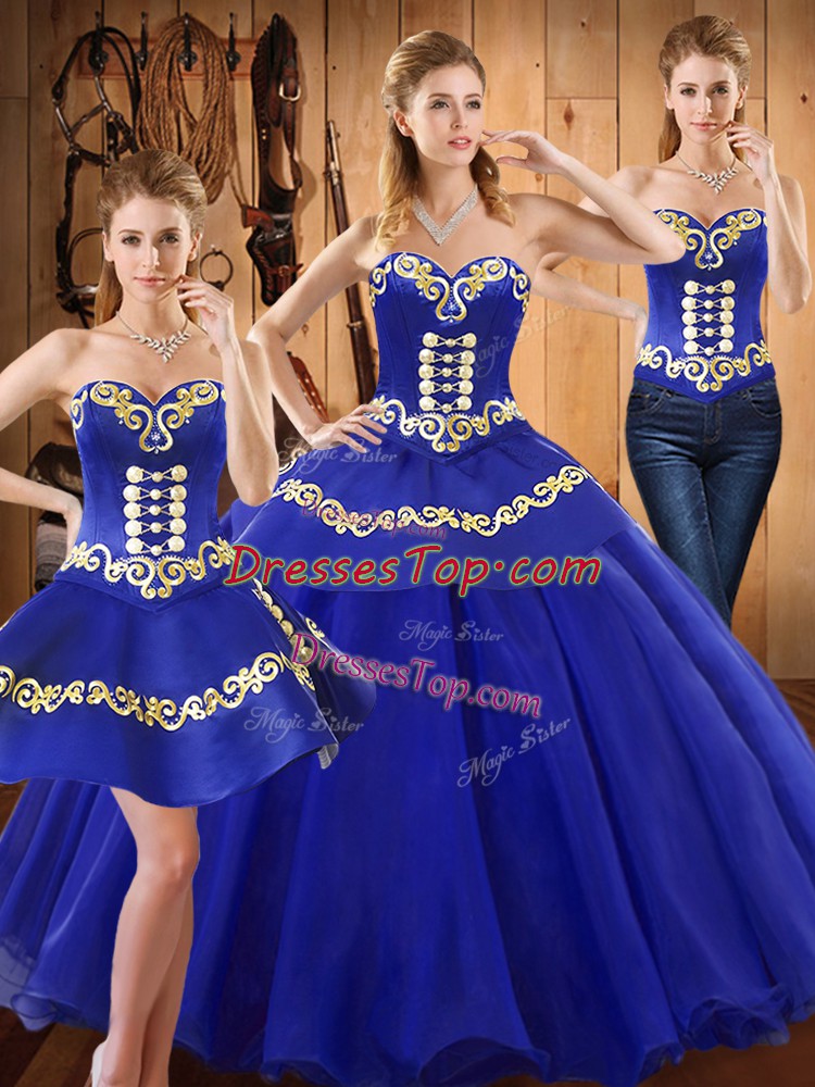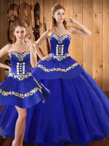 Luxurious Sleeveless Tulle Floor Length Lace Up Sweet 16 Dresses in Blue with Embroidery