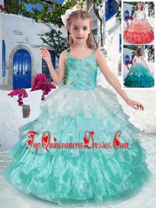 Luxurious Straps Ball Gown Little Girl Mini Quinceanera Dresses with Ruffled Layers