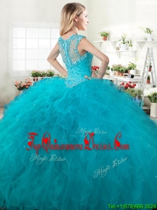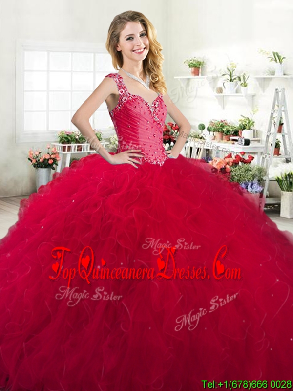 Luxurious Straps Beaded and Ruffled Quinceanera Dress in Red