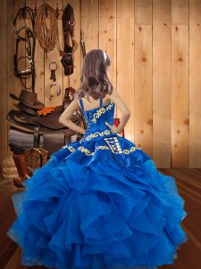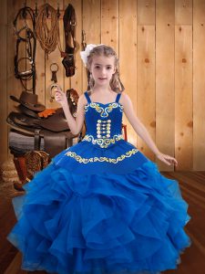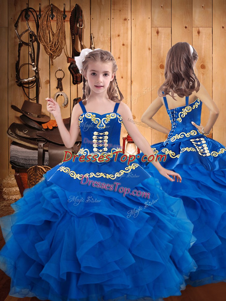Luxurious Straps Sleeveless Lace Up Little Girl Pageant Dress Blue Organza