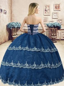 Luxurious Three Piece White and Baby Blue Sleeveless Organza Lace Up Quinceanera Dress for Military Ball and Sweet 16 and Quinceanera