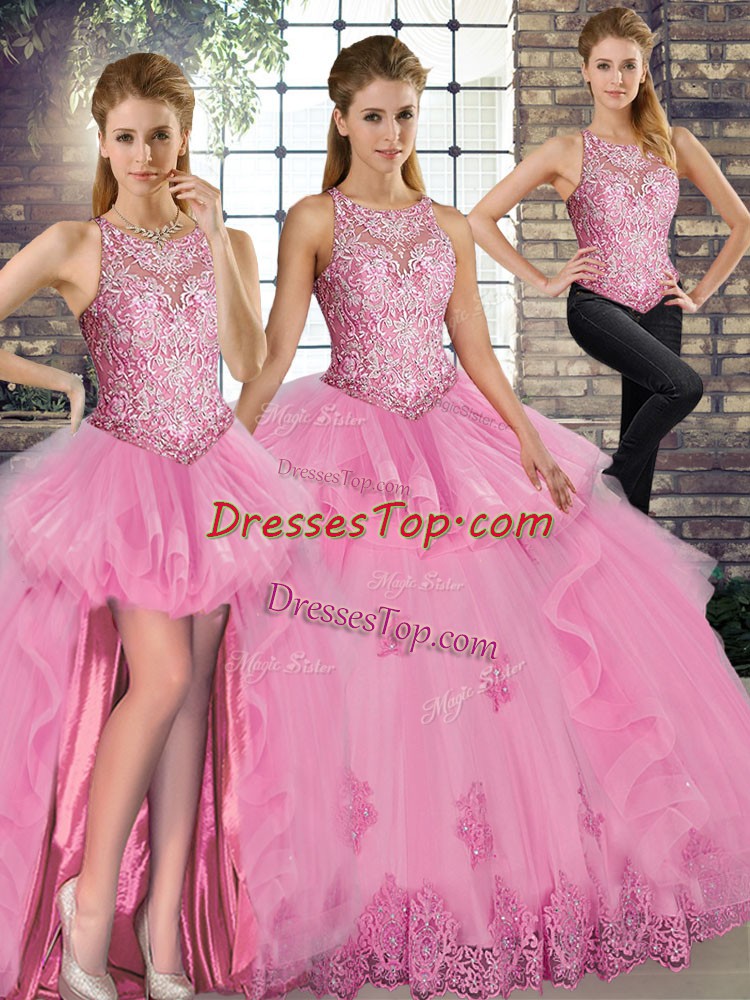 Luxurious Tulle Sleeveless Floor Length Sweet 16 Dresses and Lace and Embroidery and Ruffles