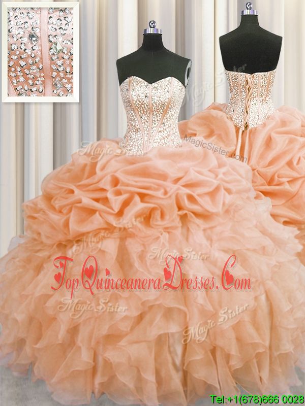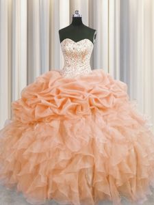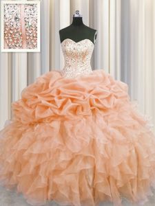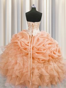 Luxurious Visible Boning Sleeveless Zipper Floor Length Beading and Ruffles Sweet 16 Quinceanera Dress