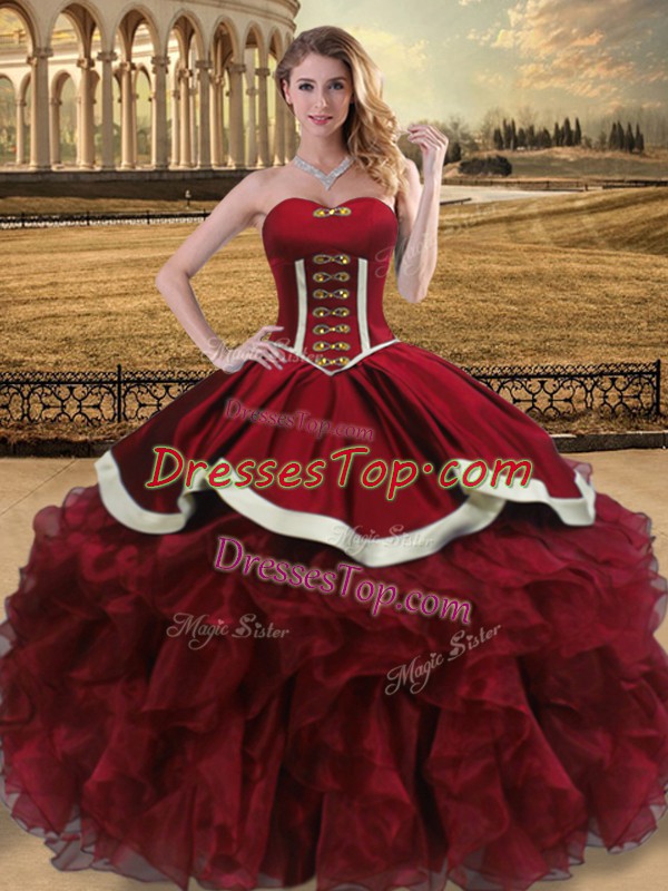 Luxurious Wine Red Ball Gowns Beading and Ruffles Quinceanera Gown Lace Up Organza Sleeveless Floor Length