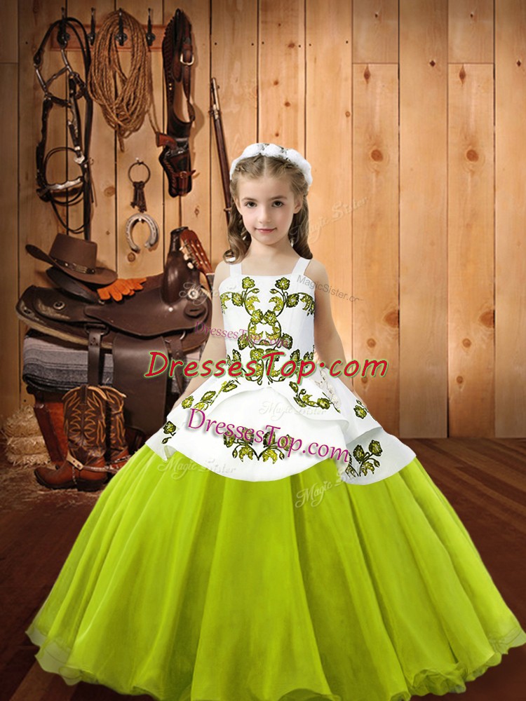 Luxurious Yellow Green Lace Up Pageant Dress for Girls Embroidery Sleeveless Floor Length