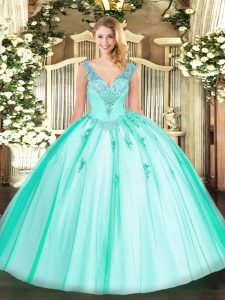 Luxury Beading Sweet 16 Quinceanera Dress Turquoise Lace Up Sleeveless Floor Length