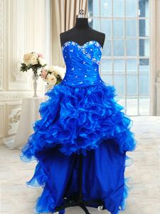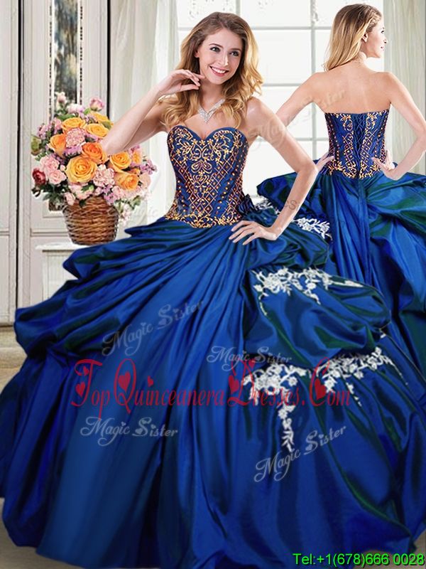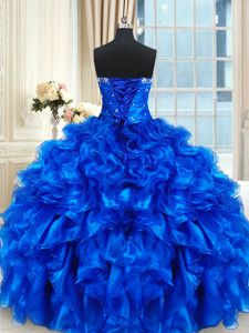 Luxury Four Piece Floor Length Ball Gowns Sleeveless Royal Blue Vestidos de Quinceanera Lace Up
