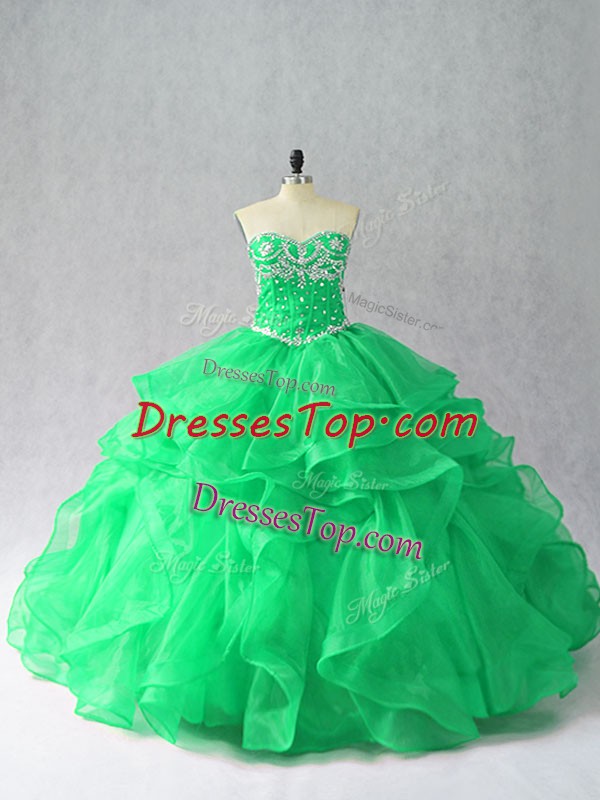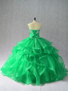 Luxury Green Organza Lace Up Sweetheart Sleeveless Floor Length Quinceanera Dresses Beading and Ruffles
