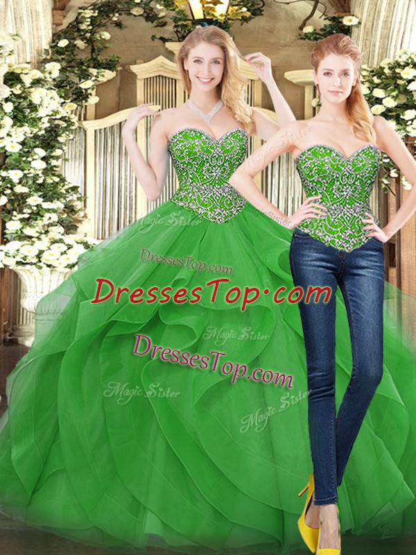 Luxury Green Sweetheart Neckline Beading and Ruffles Quinceanera Gowns Sleeveless Lace Up