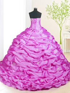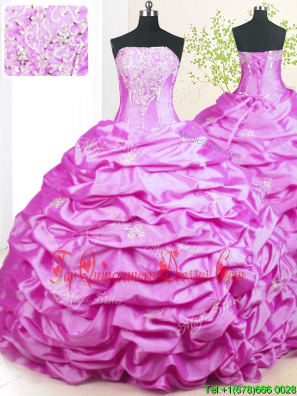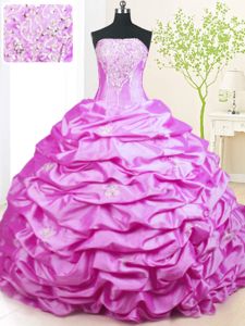Luxury Lilac Lace Up Strapless Beading and Pick Ups Sweet 16 Dresses Taffeta Sleeveless Sweep Train