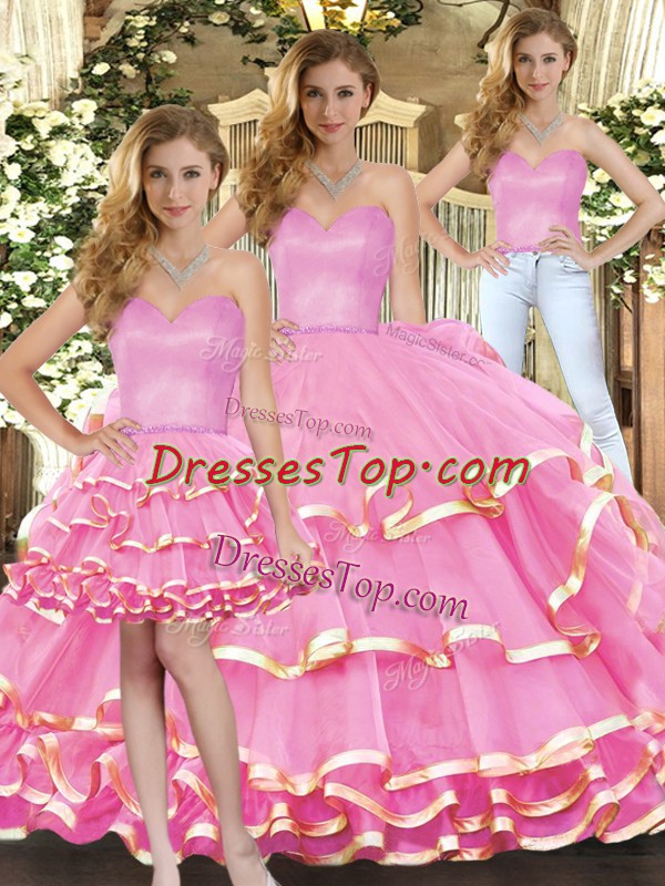 Luxury Organza Sweetheart Sleeveless Lace Up Ruffled Layers Quinceanera Dresses in Rose Pink