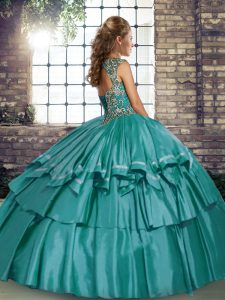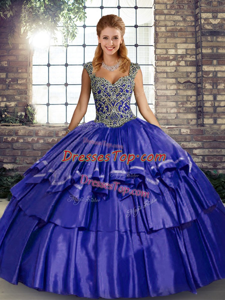 Luxury Purple Straps Lace Up Beading and Ruffled Layers Quince Ball Gowns Sleeveless