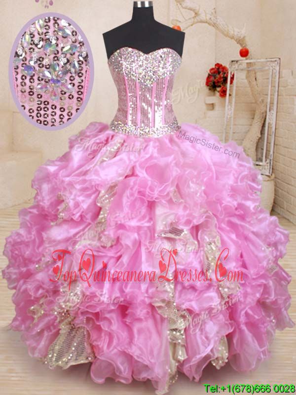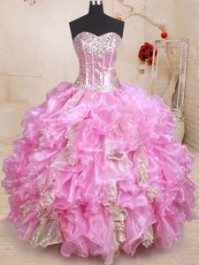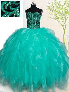 Luxury Turquoise Ball Gowns Sweetheart Sleeveless Organza Floor Length Lace Up Beading and Ruffles Sweet 16 Dresses