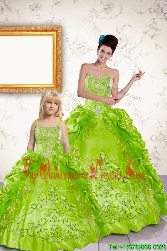 Luxury Yellow Green Taffeta Lace Up Halter Top Sleeveless Floor Length Sweet 16 Quinceanera Dress Beading and Embroidery and Pick Ups