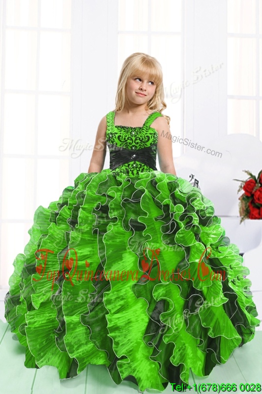 Mermaid Child Pageant Dress Straps Organza Sleeveless Floor Length Lace Up