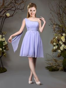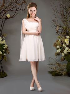 Mini Length Champagne Quinceanera Dama Dress Organza Sleeveless Lace and Ruffles and Belt