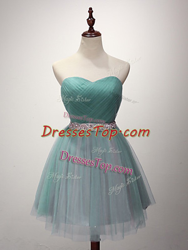 Mini Length Green Vestidos de Damas Tulle Sleeveless Beading and Ruching