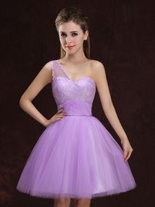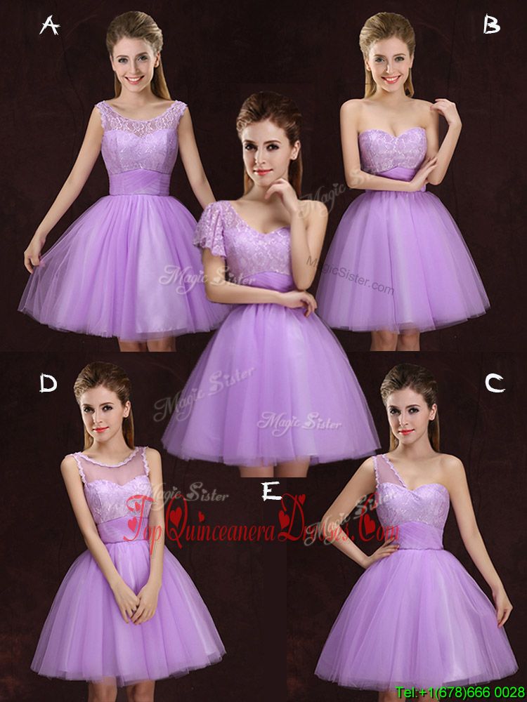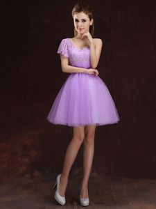 Mini Length Lilac Damas Dress Scoop Sleeveless Lace Up